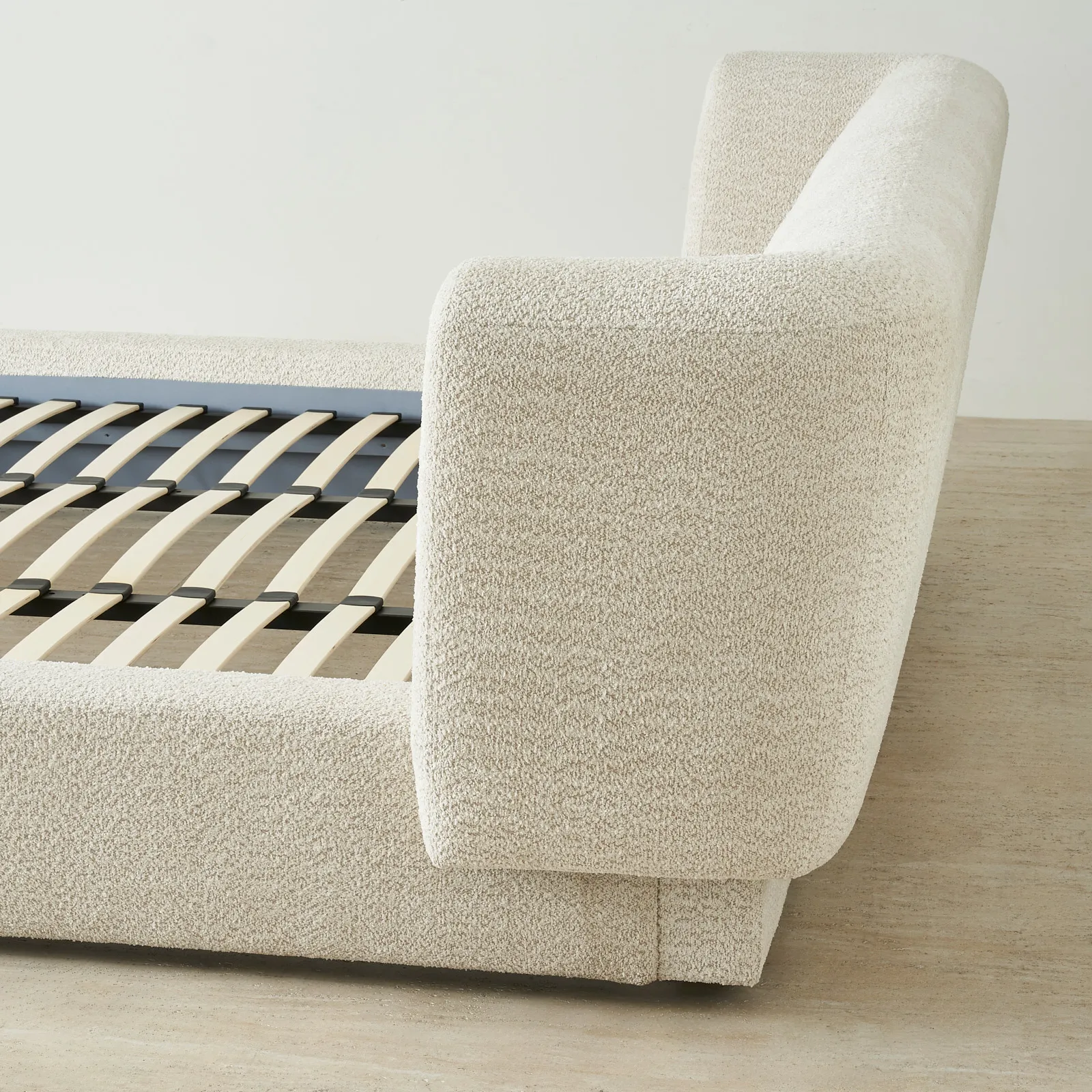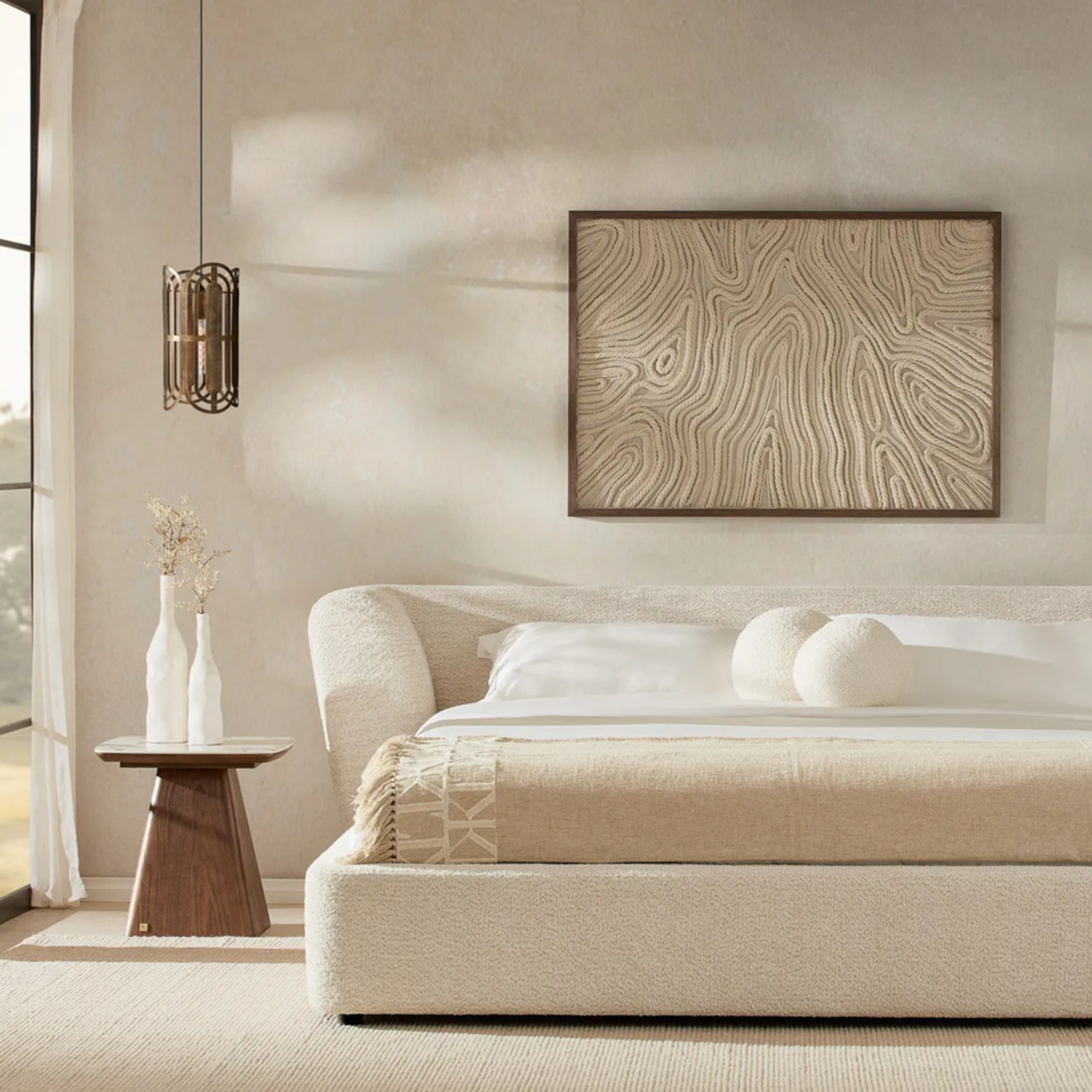 The Antonella Bed offers exceptional comfort with its soft, woven fabric, designed to provide a cosy, inviting feel. The bed’s sleek, minimalist form exudes modern elegance, while the rich texture of the fabric adds subtle depth to the design.