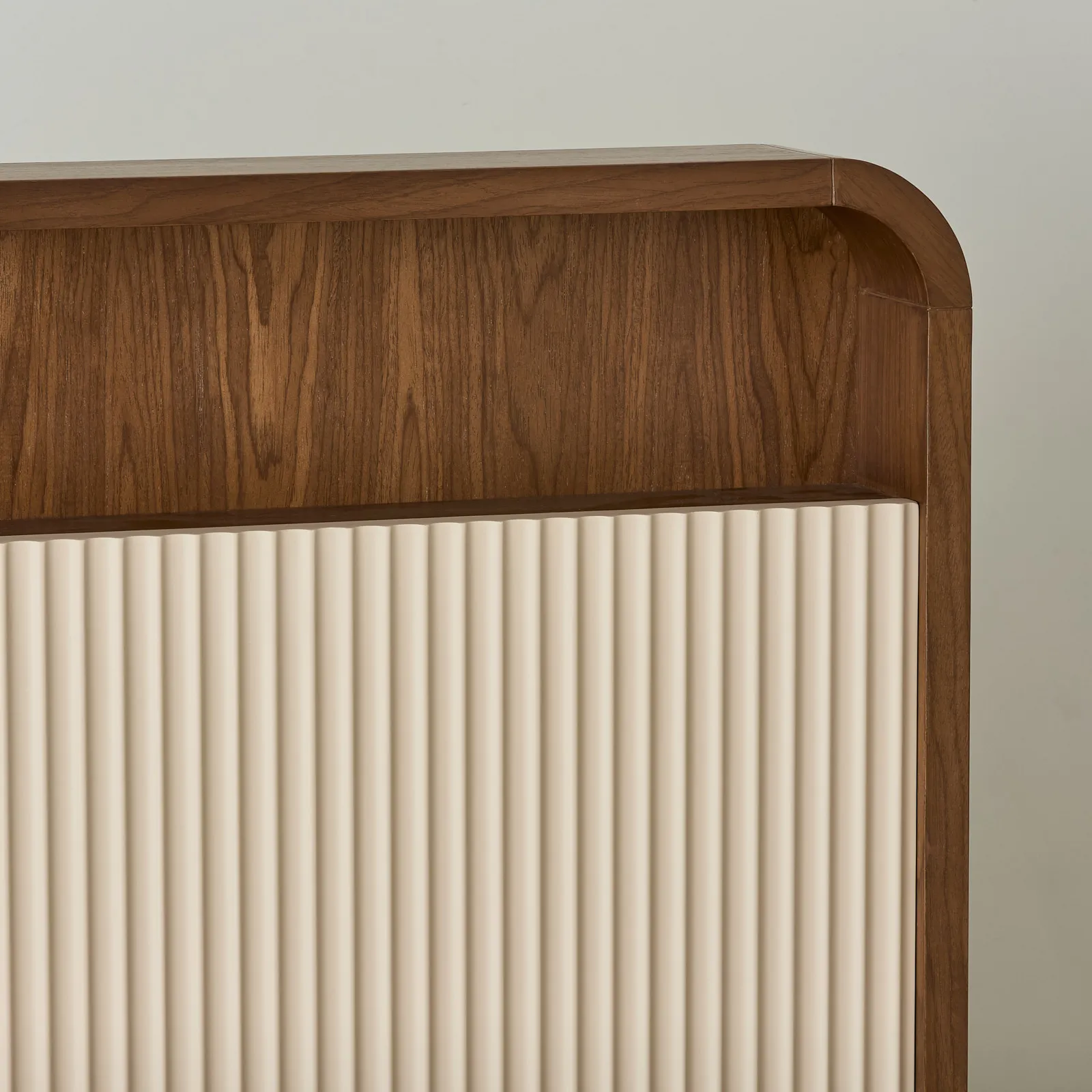 The Harper King Bed is designed to give your child extra space to stretch out while still fitting neatly into a compact room. The sturdy frame includes a rounded headboard with grooved panels in calming beige.
