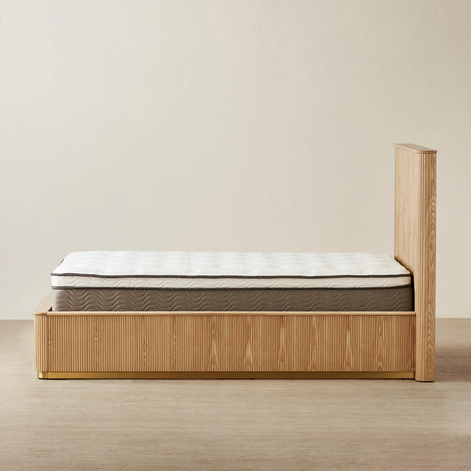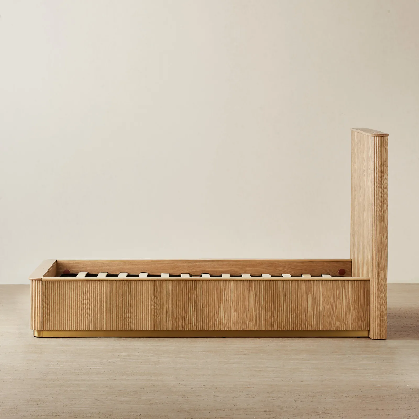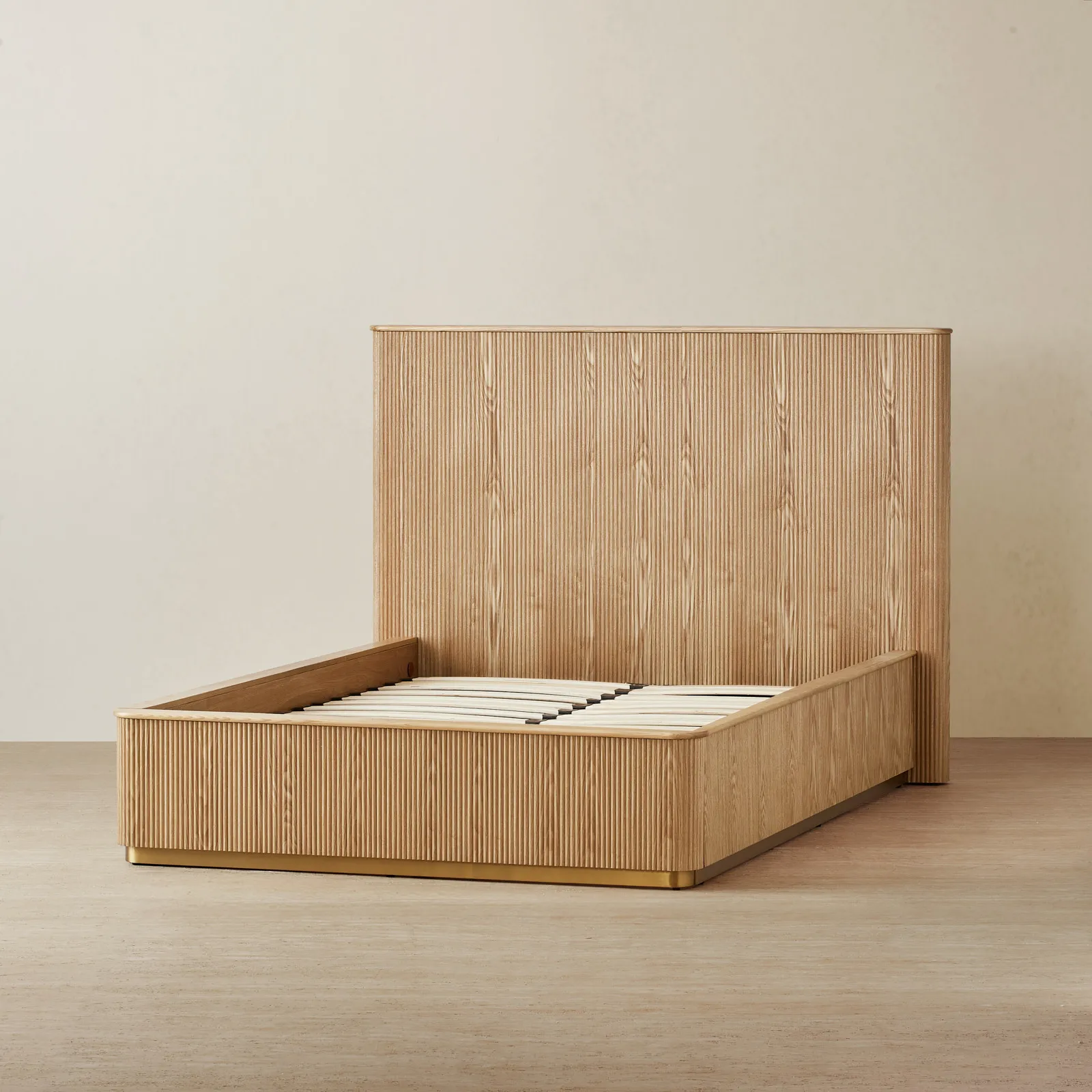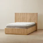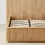 The San Pierre Light Brown Ash Double Bed turns simple lines into a statement with its fluted wood design. It is well-suited for a sizable space for one or a snug fit for two.