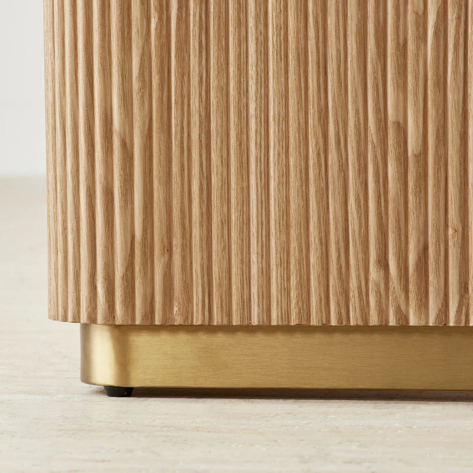 The light ash finish adds warmth while blending seamlessly with modern or classic interiors. Resting on a subtle base, it grounds the room with quiet elegance.