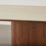 San Pierre Walnut Veneer Dining Table – Single Leg – Travertine Finish Sintered Stone Top 200x110cm